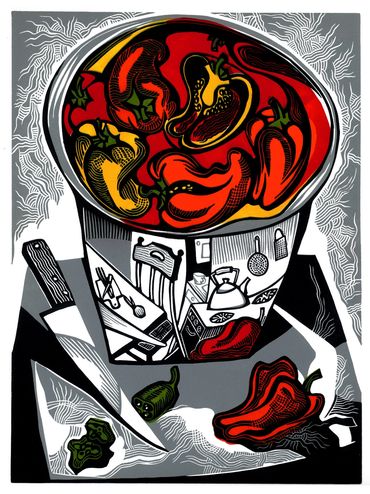 For several years, I explored the linocut medium and created dozens of black and white and multicolored original prints. Here are some of them, and more available to view and purchase at my online store